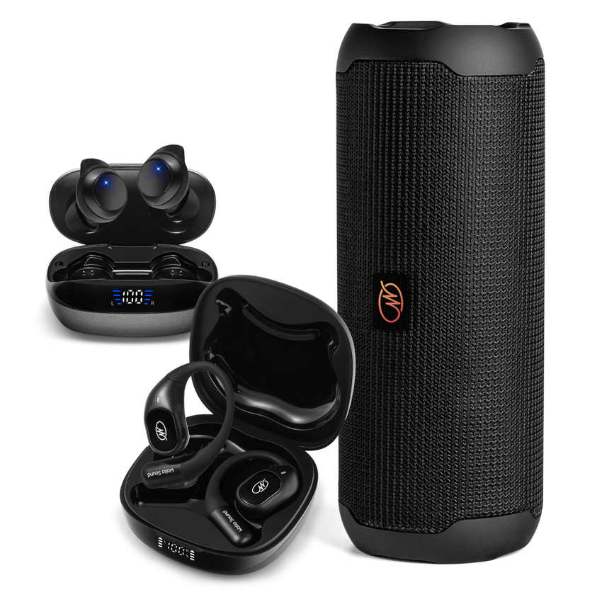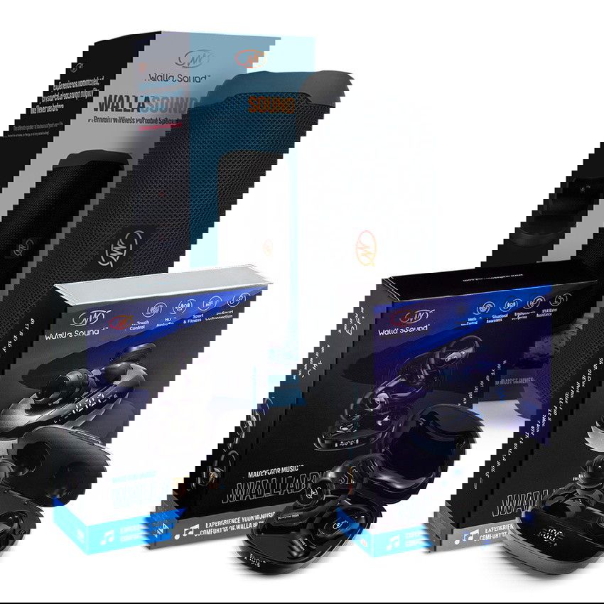 Wireless Earbuds & Bluetooth Speaker Bundle – Portable Speaker with FM Radio, WallaBuds Fit, and WallaBuds Pro for superior audio anywhere you go.