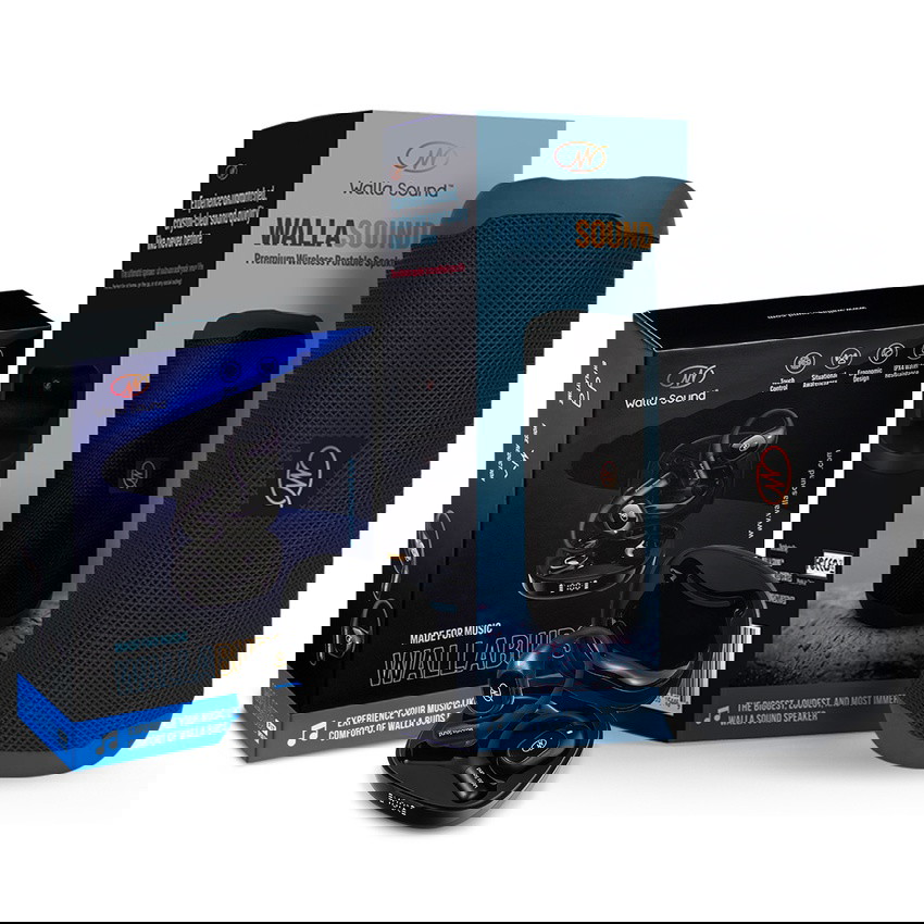 Enjoy crystal-clear wireless sound with Walla Sound’s WallaBuds Fit and Walla Sound Bluetooth Speaker featuring fast-pair Bluetooth 5.3 for smooth, uninterrupted listening. Stay powered with up to 50 hours of WallaBuds battery life and 10 hours of playtime from the portable speaker so your music keeps going as long as you do. Built for adventure, the WallaBuds Fit is IPX4 water- and sweat-resistant, while the rugged speaker is designed for outdoor use and travel. Manage music, calls, and volume easily with smart touch controls on the earbuds and versatile playback options on the speaker. Connect seamlessly to multiple devices and enjoy FM Radio mode on the speaker for a classic listening experience.